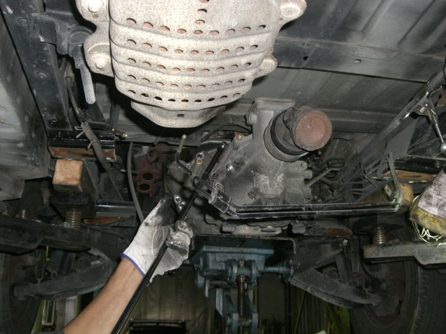 そして ボルト を 緩めて ミッションを 少しずつ づらして・・・・・