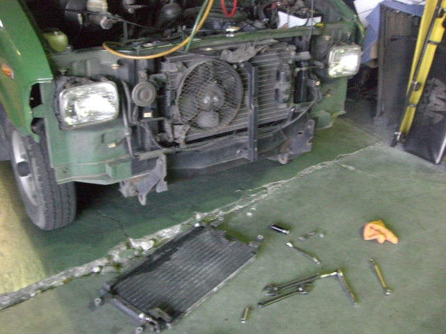 床に 置いてある ラジエターみたいな 部品が クーラーコンデンサーです!!