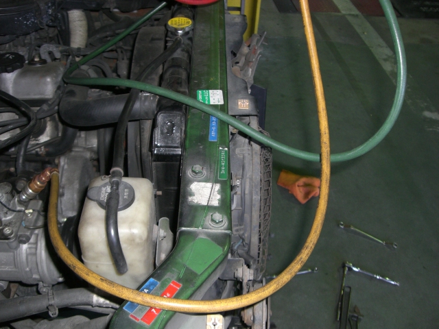 ボディーカラーの グリーン(ラジエターサポート部)の所を 挟んで