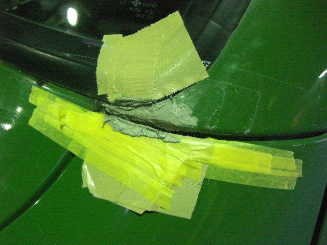 上の写真のように 錆を落として パテ と ファイバーを用いて 応急処理を施しました。